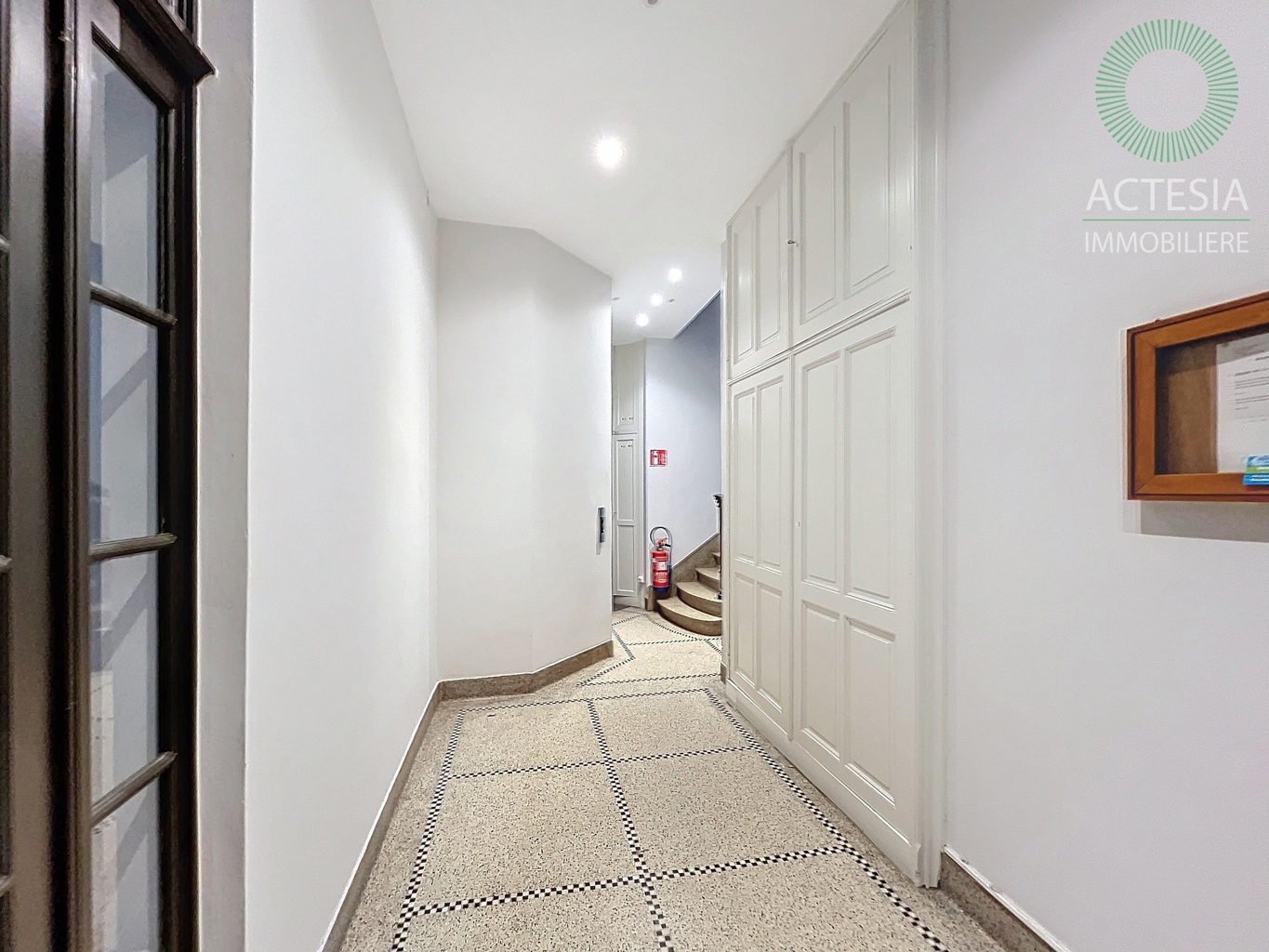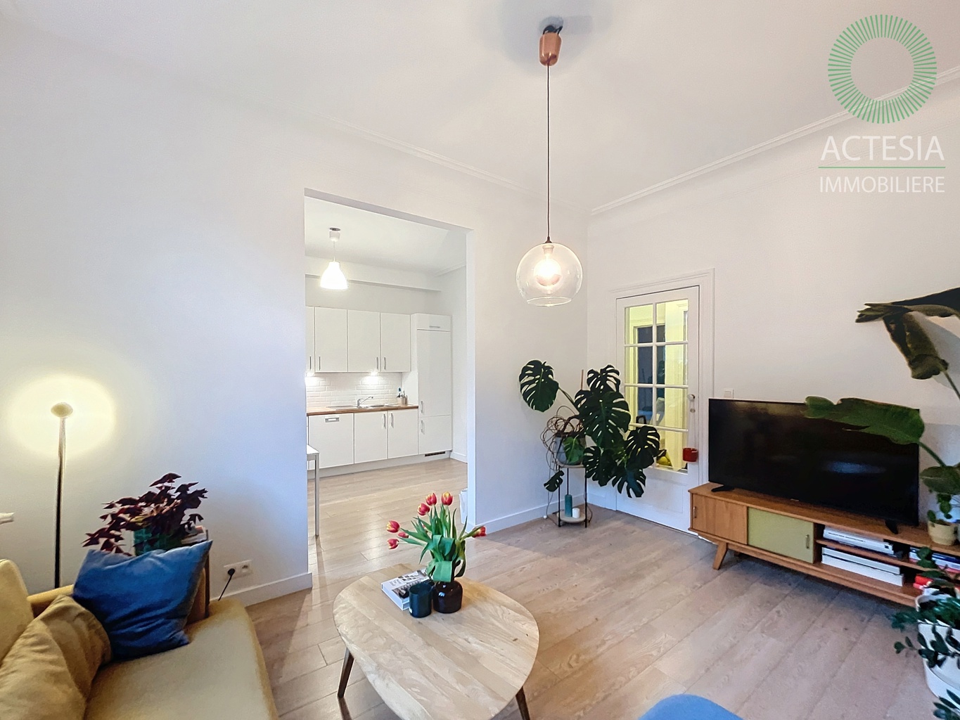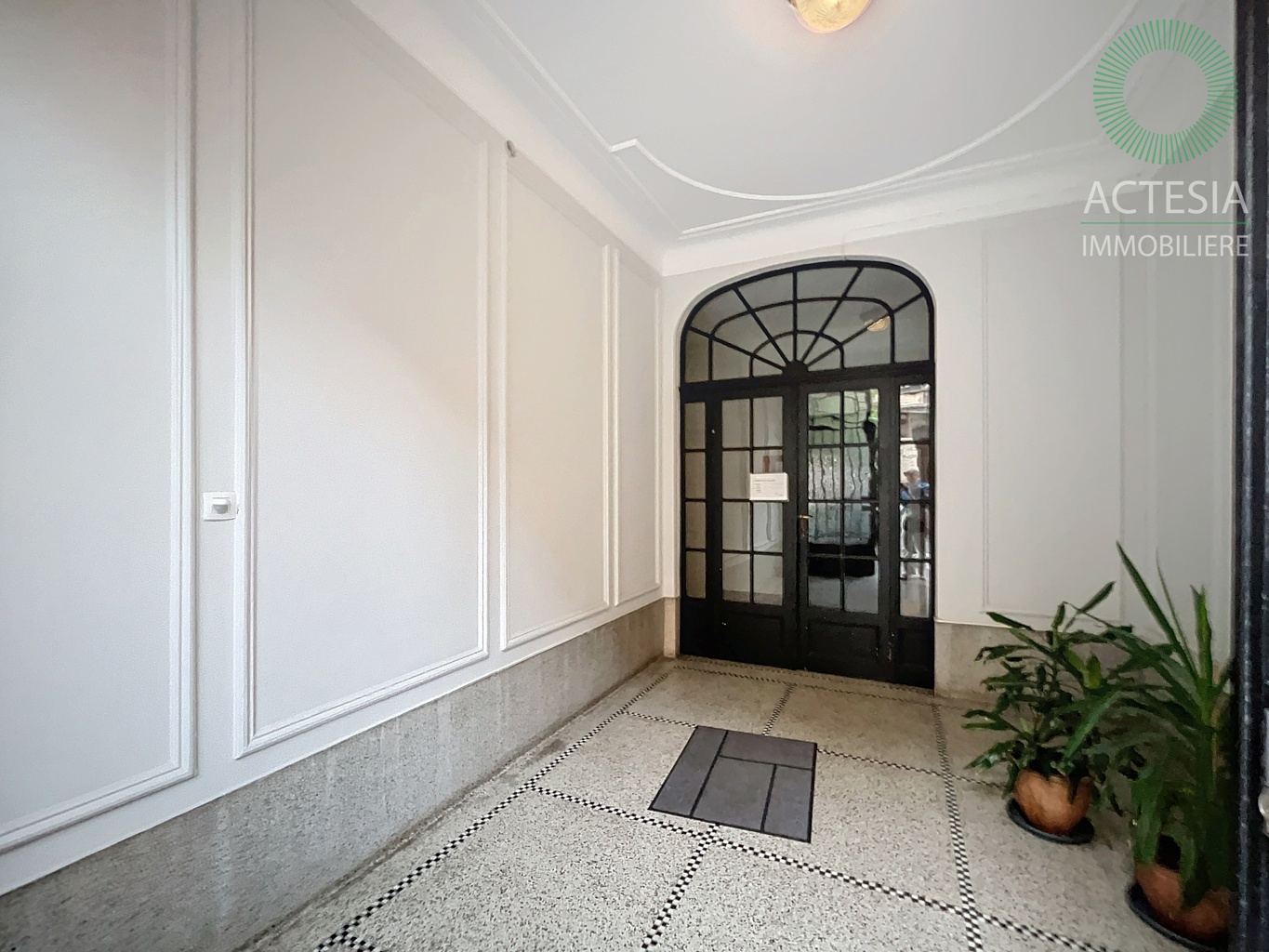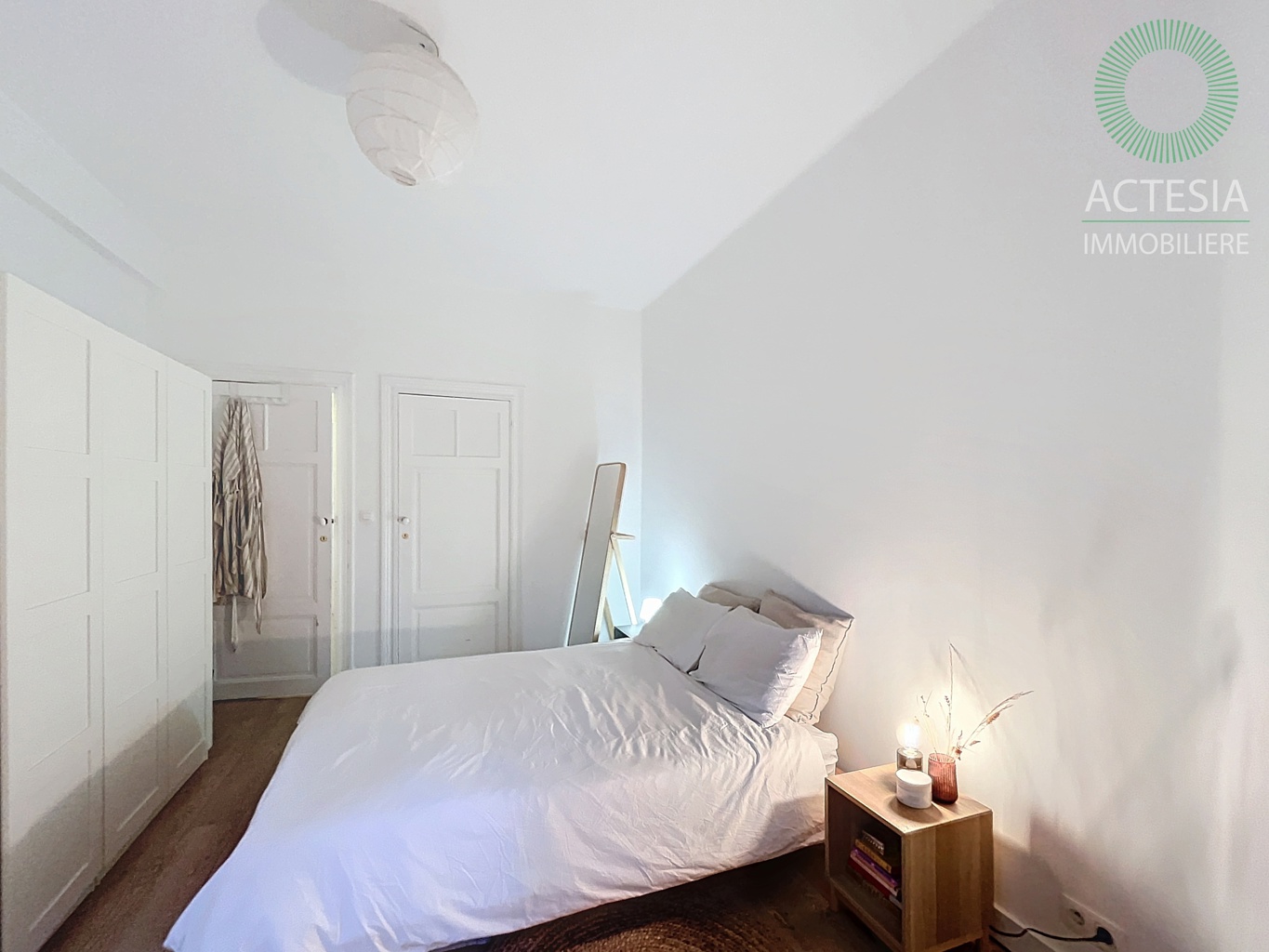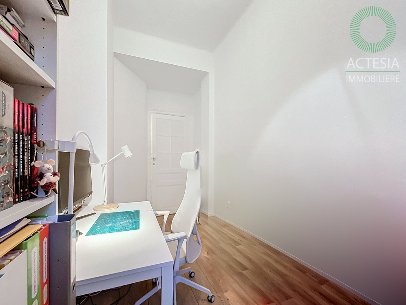 Loyer : 950 € + 150 € de provision de charges pour le chauffage et les communs. Electricité et eau privative. Au cœur d’Ixelles, à proximité de la place Flagey et de la Commission Européenne, superbe appartement cosy et lumineux situé au 2ème étage d’un immeuble de caractère. Il offre une superficie habitable de 70 m2. Il se compose comme suit : hall d’entrée spacieux, wc séparé, un agréable coin salon, une salle à manger avec cuisine ouverte super équipée (évier, taques électriques, four, hotte, frigo, lave-vaisselle), salle de bains avec douche italienne - meuble lavabo – espace pour la machine à laver, une belle grande chambre et un bureau/dressing donnant sur l’arrière. L’appartement est transversant et dispose d’un balcon côté rue et d’un autre avec vue sur le jardin commun. Au rez-de-chaussée : une cave. Confort : appartement très soigné, chauffage central mazout, double vitrage PVC, parlophone Excellente situation : proche de tous les commerces, la gare du Luxembourg, les bus, les écoles et les axes autoroutiers.