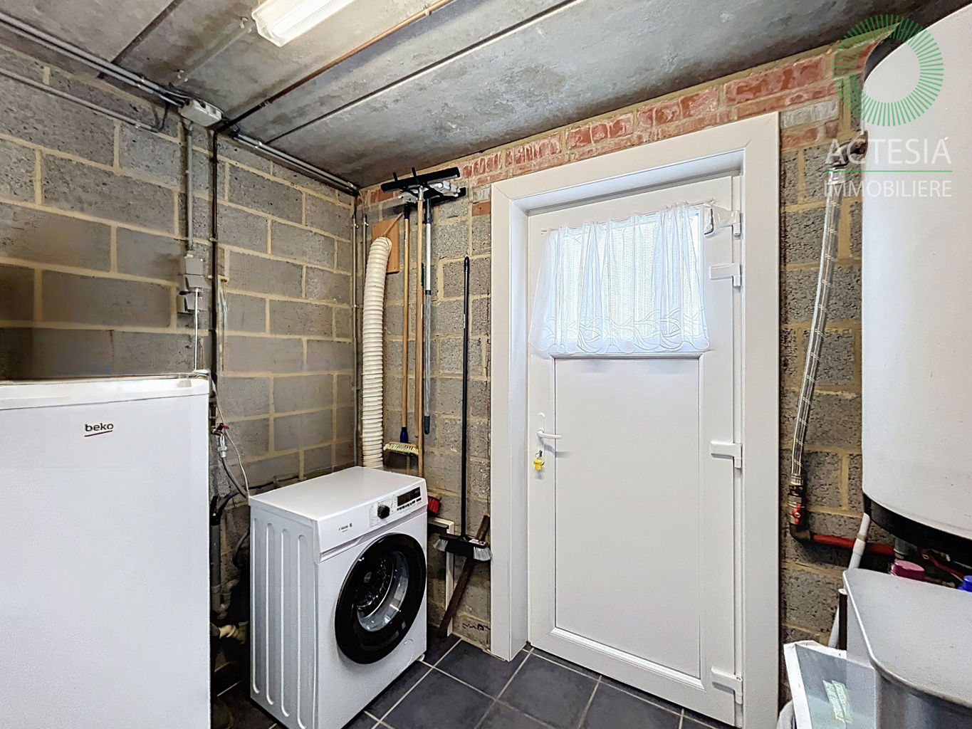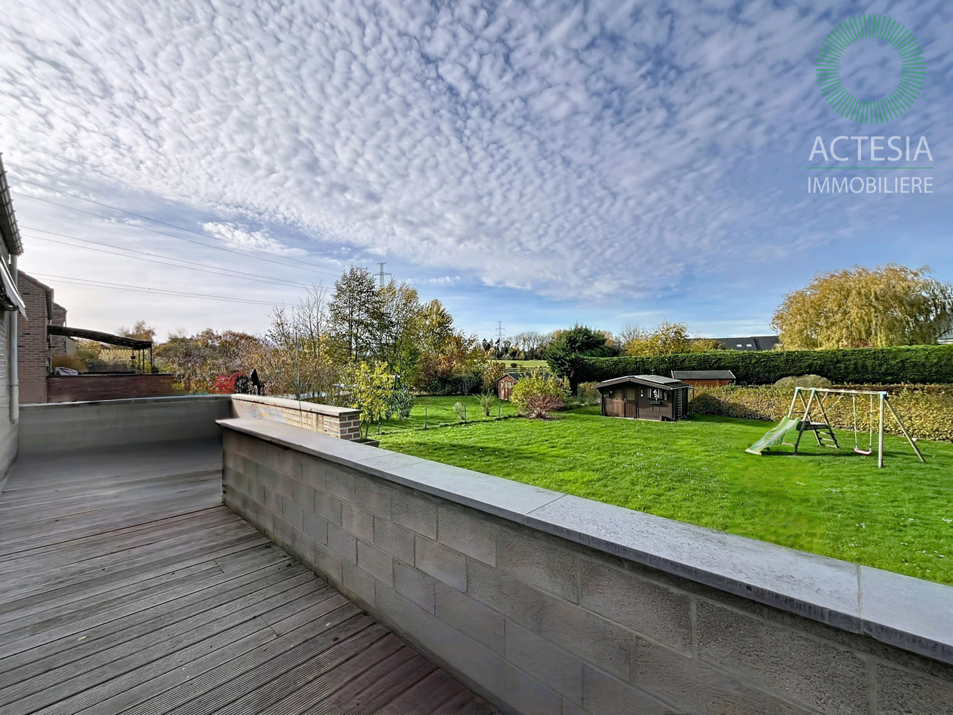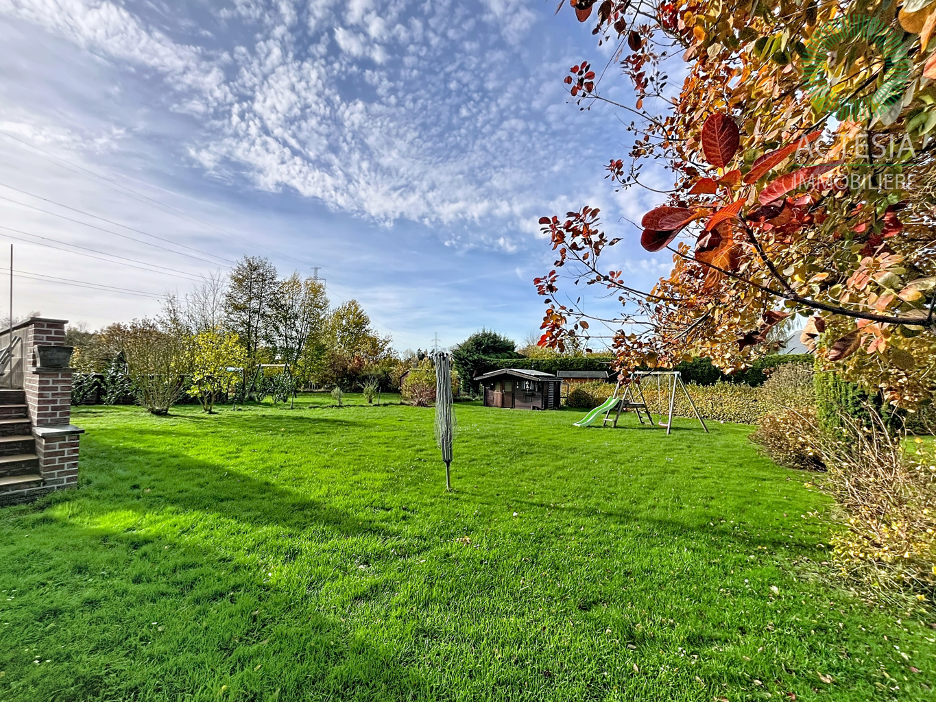 Avec une superficie habitable de ± 123 m², elle se compose comme suit : rez-de-chaussée : un hall d’entrée avec wc invité, un séjour lumineux ouvert sur une terrasse ensoleillée composé d’un salon, d’une salle à manger et d’un coin lecture, une cuisine équipée moderne et fonctionnelle ainsi qu’une buanderie pratique complète ce niveau.1er étage : un vaste palier dessert 3 chambres dont une avec espace dressing, une salle de bains. Au sous-sol : spacieuses caves. Grenier non aménageable. Extérieur : Jardin, terrasse, abri de jardin, carport et emplacement de parking.