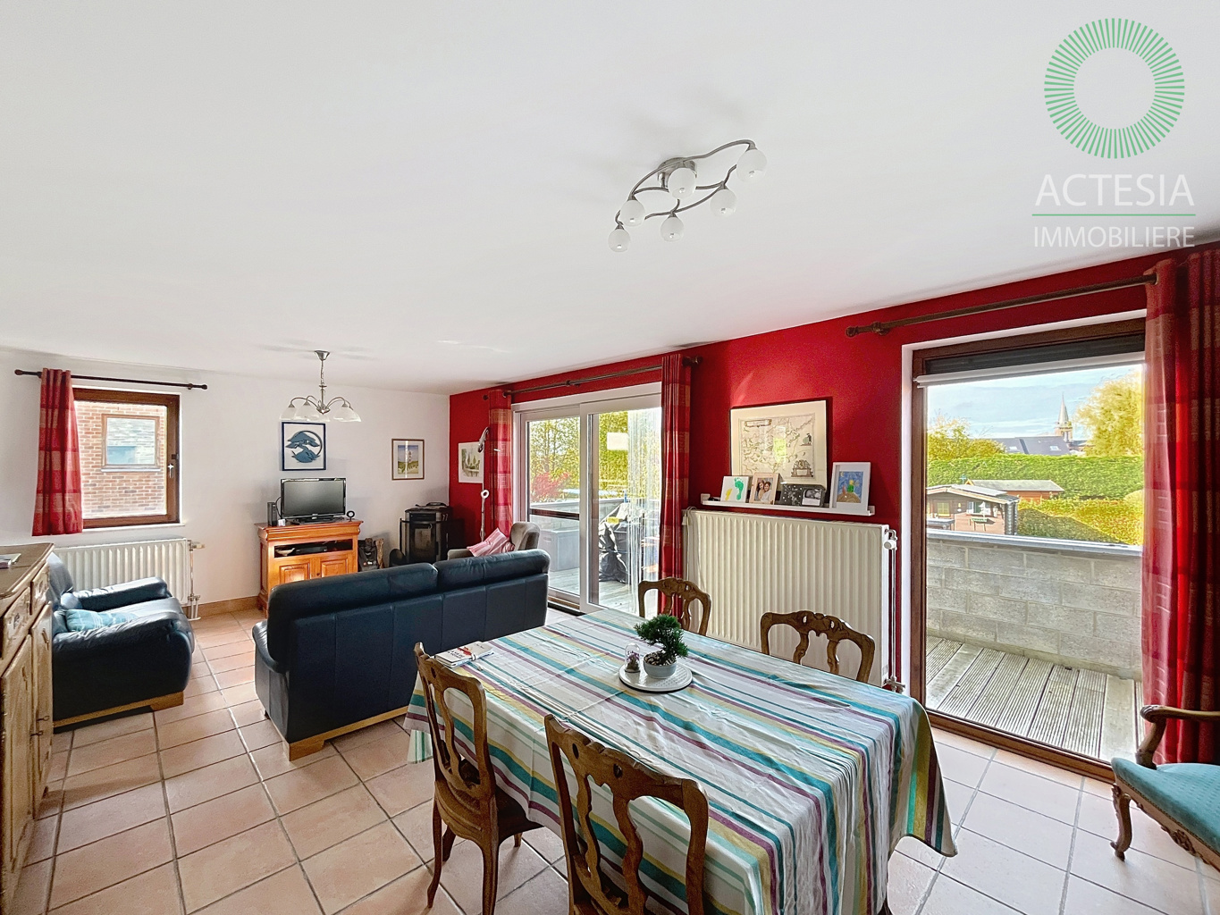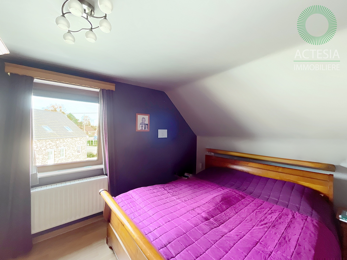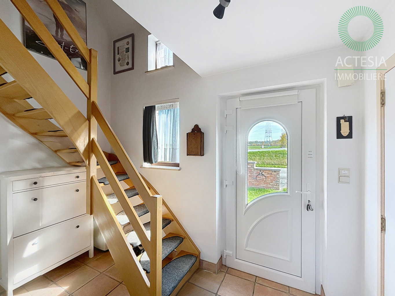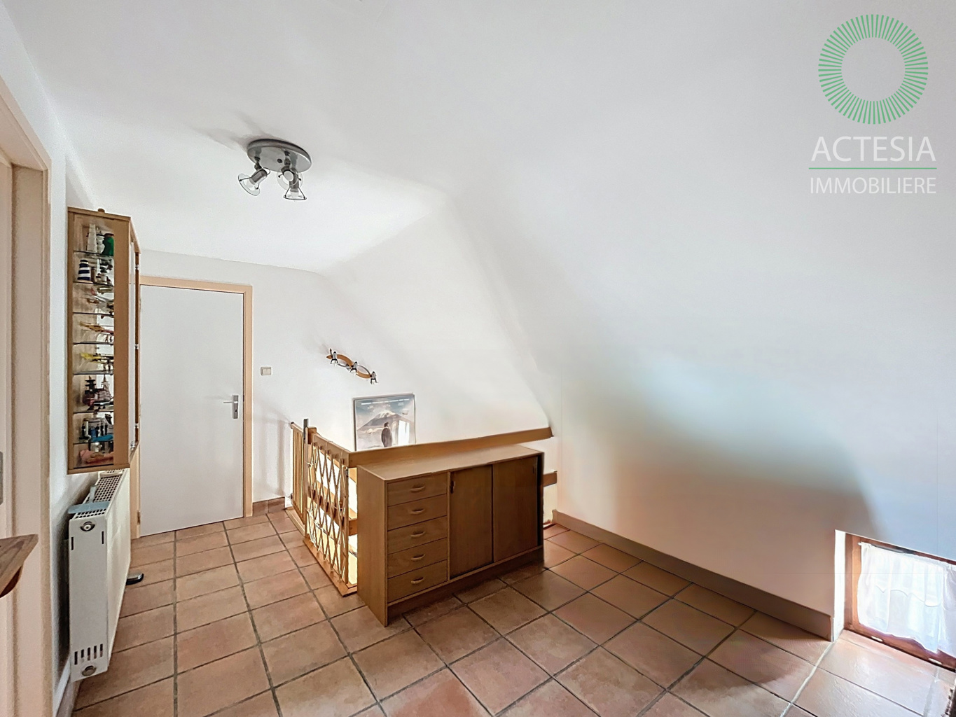 Avec une superficie habitable de ± 123 m², elle se compose comme suit : rez-de-chaussée : un hall d’entrée avec wc invité, un séjour lumineux ouvert sur une terrasse ensoleillée composé d’un salon, d’une salle à manger et d’un coin lecture, une cuisine équipée moderne et fonctionnelle ainsi qu’une buanderie pratique complète ce niveau.1er étage : un vaste palier dessert 3 chambres dont une avec espace dressing, une salle de bains. Au sous-sol : spacieuses caves. Grenier non aménageable. Extérieur : Jardin, terrasse, abri de jardin, carport et emplacement de parking.