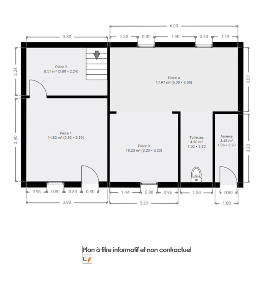 Avec une superficie exploitable de ± 86 m², elle se compose comme suit : rez-de-chaussée : 60 m² distribué en 4 pièces. 1er étage : 2 chambres. Niveau de confort : annexe à rénover entièrement, toiture en éternit, pas de chauffage.