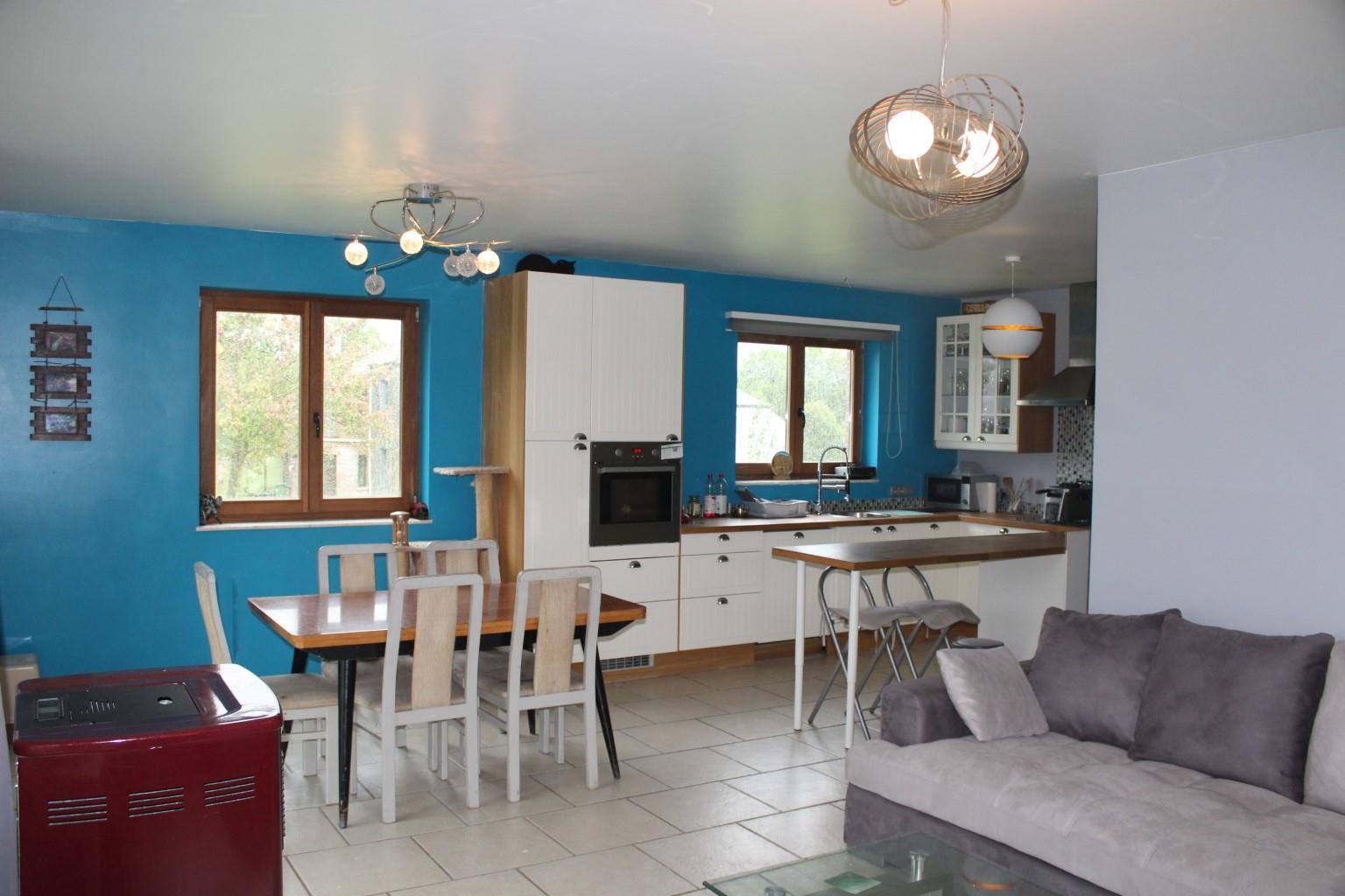 FAIRE OFFRE à partir de 190.000 € sous réserve de l'accord des propriétaires. Sur une belle propriété de 10 ares, en plein cœur de Beauraing, lumineuse villa récente de 2006 prête à vivre avec grand jardin clôturé et terrasse idéalement exposés Sud. Très belle vue dégagée sur les champs. Beaux espaces : surface habitable de 110 m² et surface exploitable de 140 m² : au rez : beaux séjours lumineux, très belle cuisine super équipée, buanderie, 1 WC. A l’étage : 3 chambres (avec possibilité d’une 4ème), 1 SDB, 1 WC, Grand garage, parking extérieur. Beau jardin avec abri de jardin. Excellent niveau de confort : construction récente de 2006, bonne isolation (PEB : D), espaces de vie lumineux, chauffage central au mazout avec chaudière à prévoir, poêle à pellets, châssis double vitrage MERANTI, électricité bi-horaire et CONFORME, citerne d’eau de pluie avec groupe hydrophore, adoucisseur d’eau, panneaux photovoltaïques. Environnement agréable et bonne situation : belle vue sur les champs côté droit, agréable jardin arboré, clôturé et terrasse exposés sud. Quartier résidentiel à 2 min du centre de Beauraing